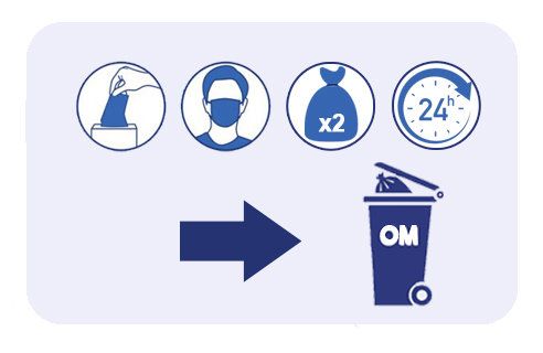 Les masques, gants, lingettes sanitaires une fois utilisés doivent être jetés dans un sac dédié.