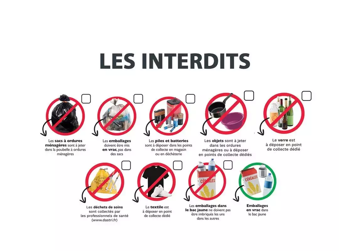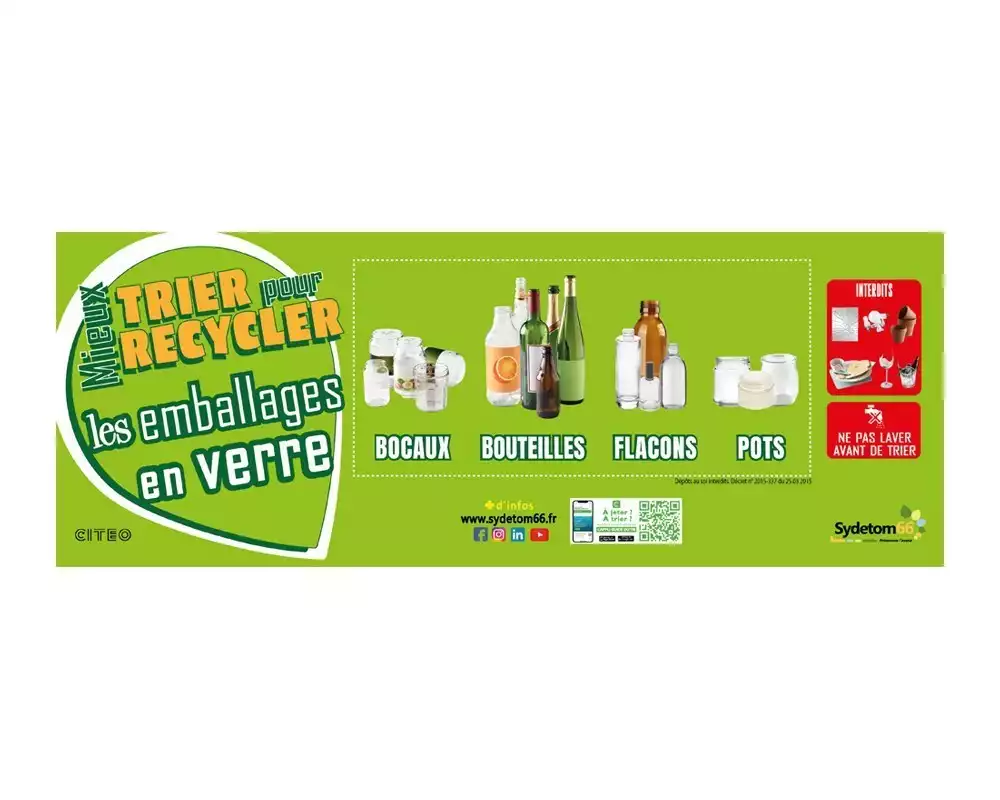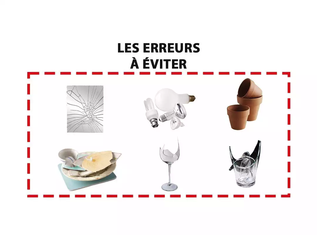 BON À SAVOIR : lorsque vous jetez les emballages en verre dans la poubelle d’ordures ménagères ou dans la poubelle jaune, non seulement il ne sont pas recyclé, mais vous augmentez les tonnages incinérés et en conséquence, le coût du traitement des déchets.