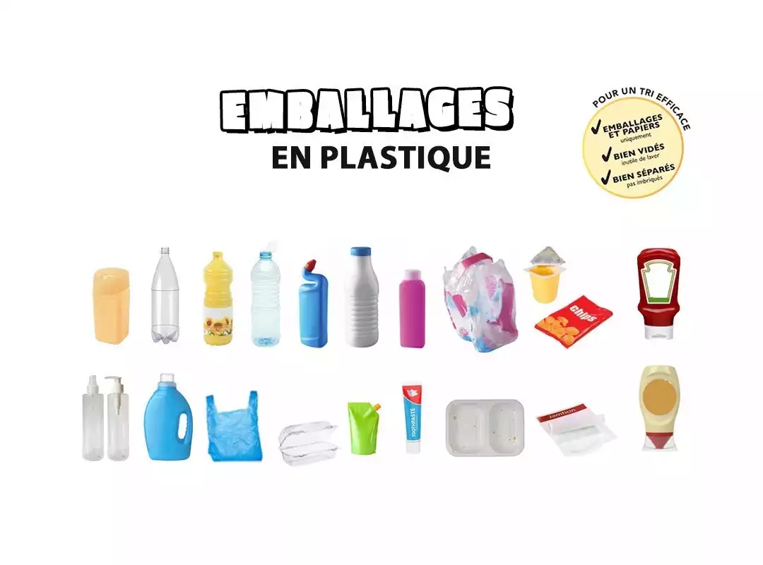 Tous les emballages en plastique doivent être déposés dans les bacs et colonnes jaunes, en vrac, et vidés.